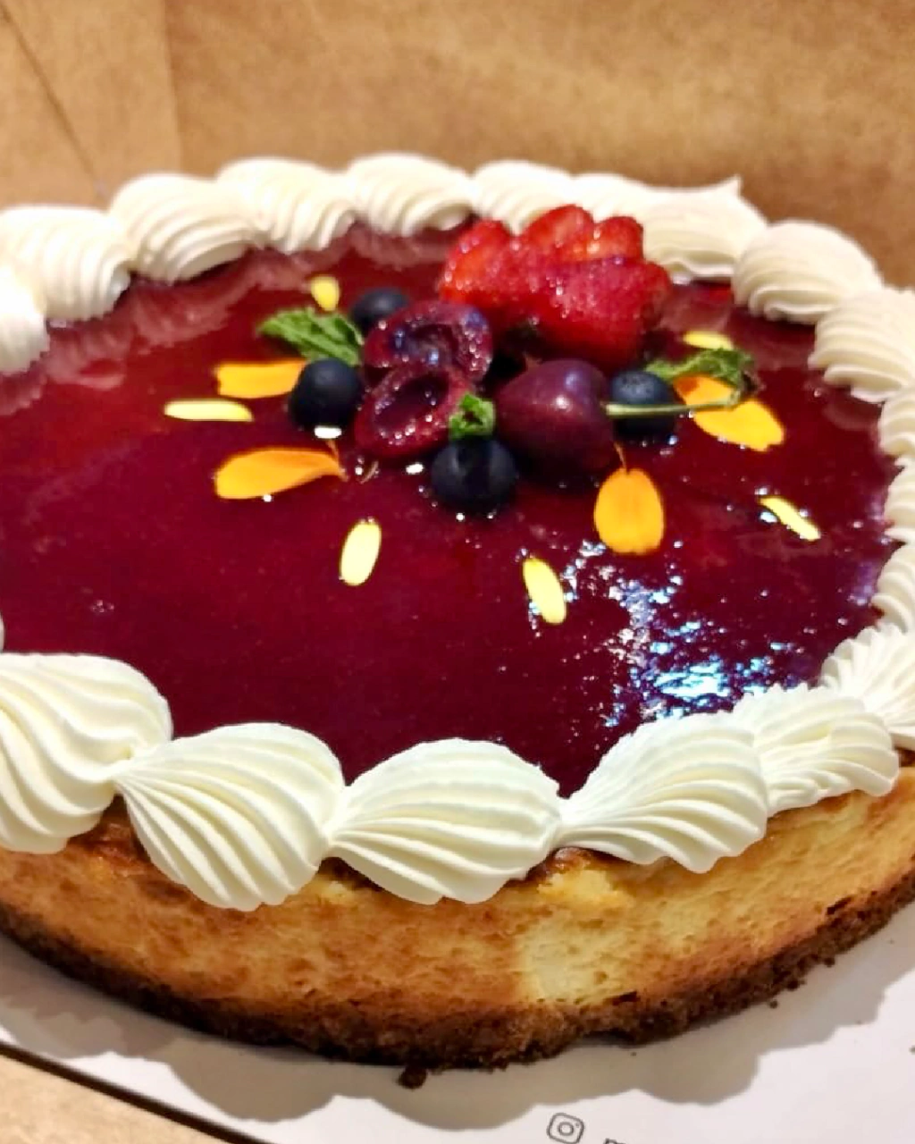 Cheesecake New York (cocido) con frutos rojos.